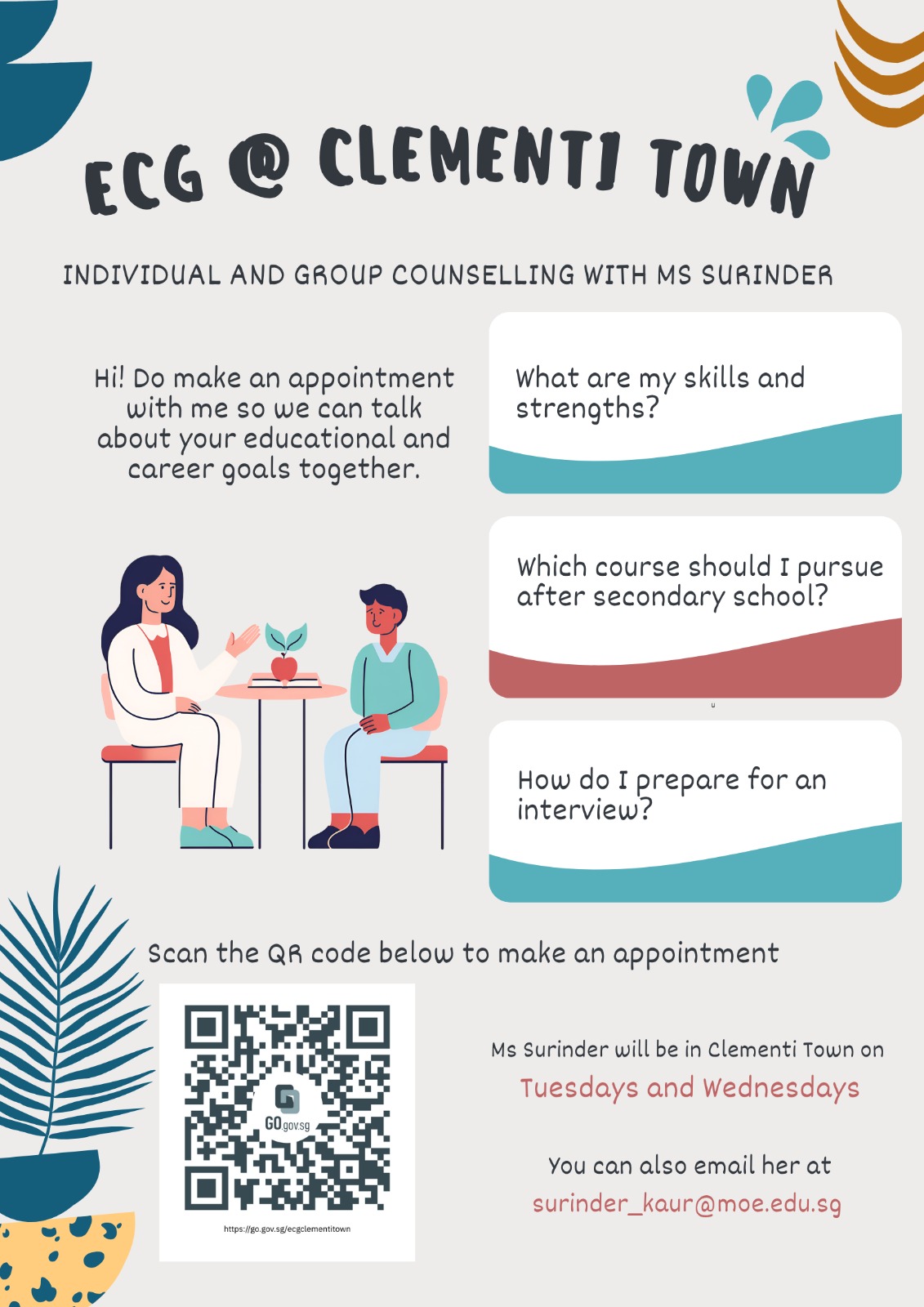 Students who wish to explore more about post-secondary options or find out more about their career interests and strengths may book a session at https://go.gov.sg/ecgclementitown