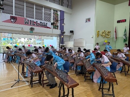 Guzheng Ensemble was established in 2000. The Guzheng Ensemble has brought glory and honour to the school by successes such as winning Gold Award (2009 and 2013) at the Singapore Youth Festivals. In addition to preparing for the Singapore Youth Festival, the Guzheng Ensemble has staged many school and public performances.