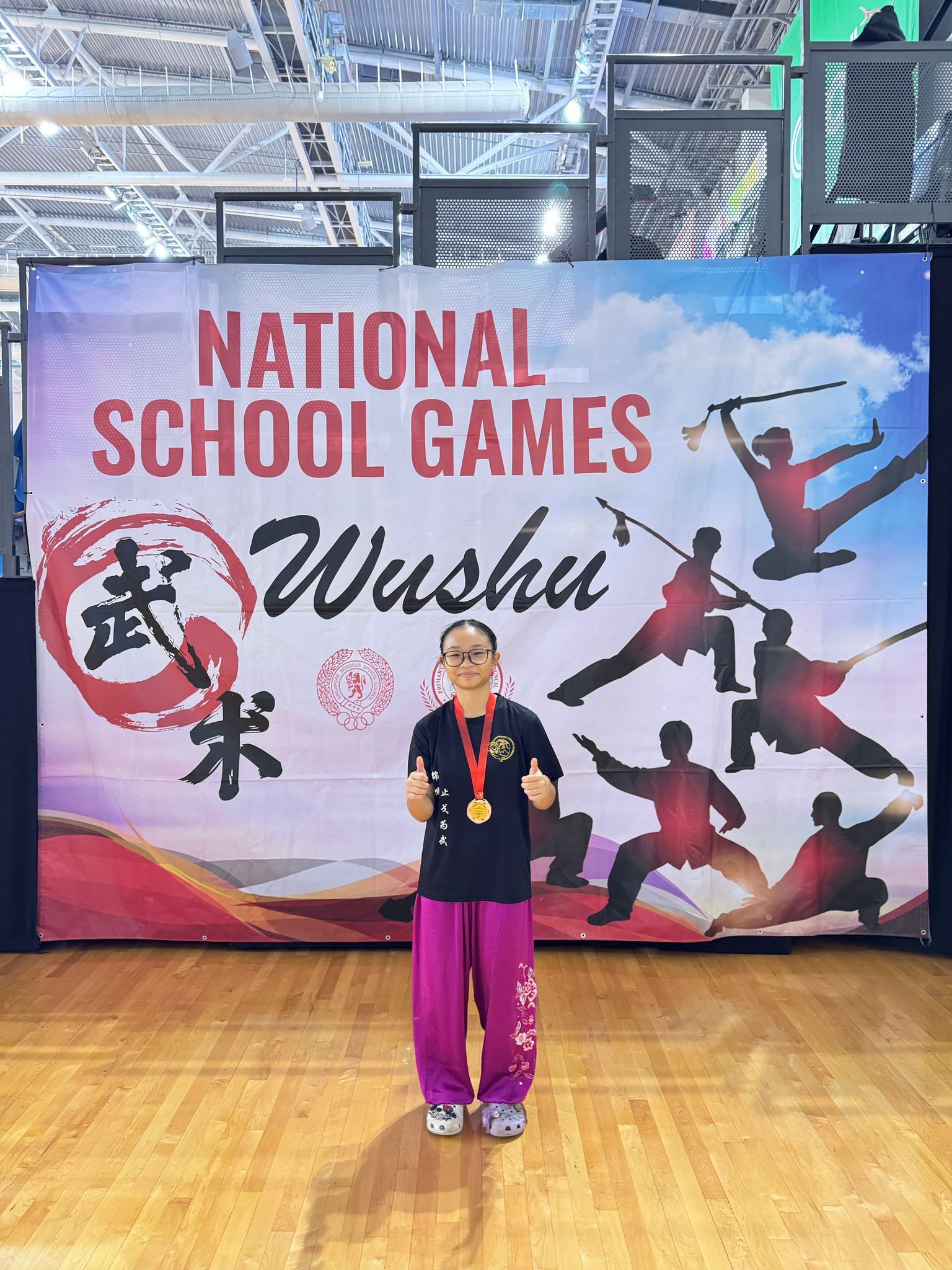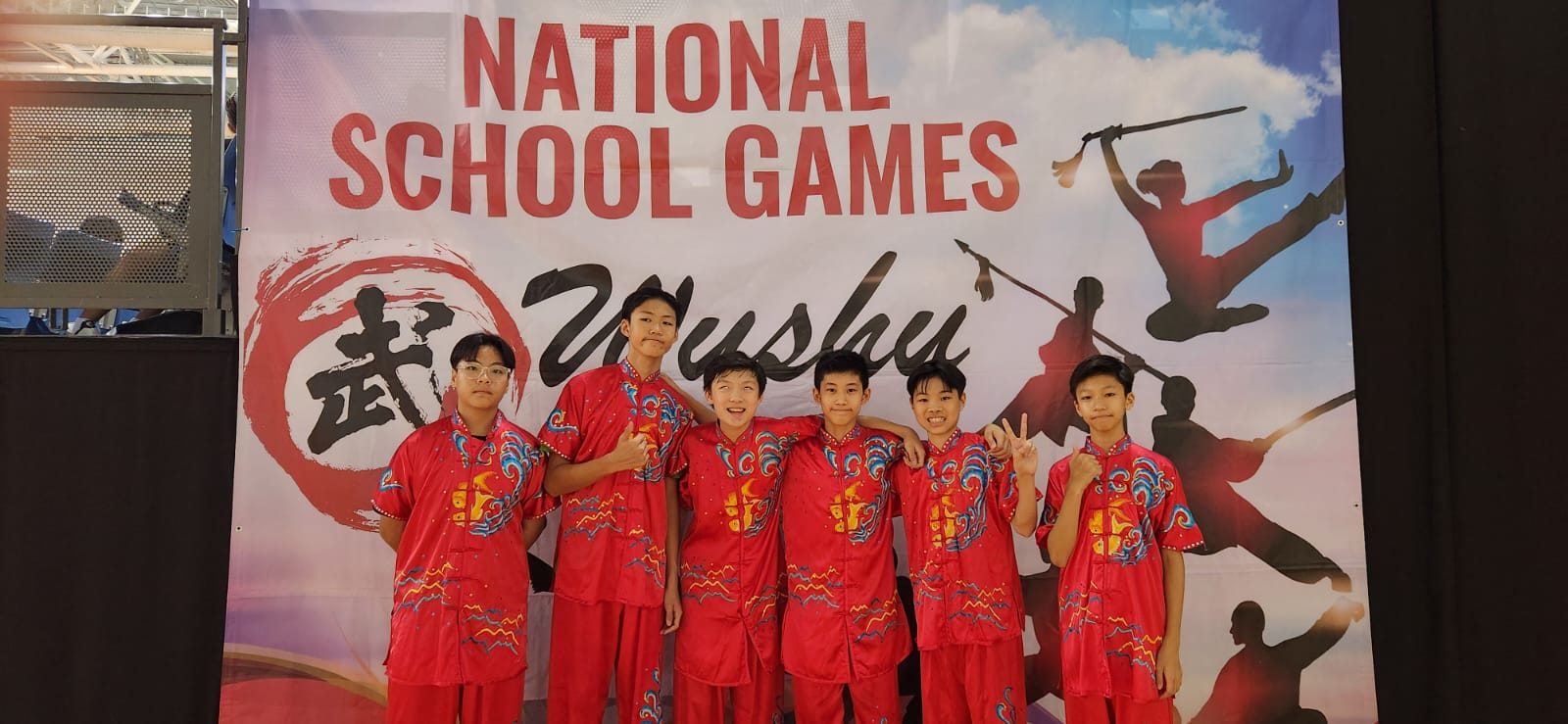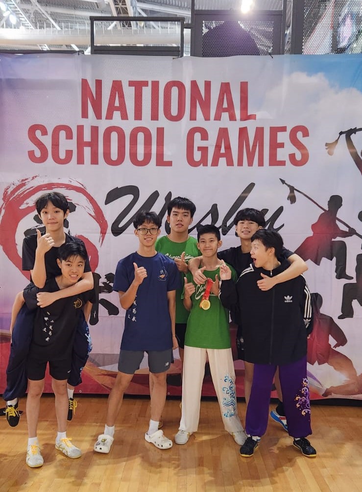 Gold Medal, National Wushu Championships 2024, B Division Boys Group Weapon: Rayner Wat Mun Jit (Qu Wenzhe), 3S6 Woo Yi Wei Lucas, 3S6 Wee Jing Zhe, 3S5 Pang Jia Xi Kavan, 4S5 Ramesh Varish, 4S6 Wong Bao Xian, 4S5 |